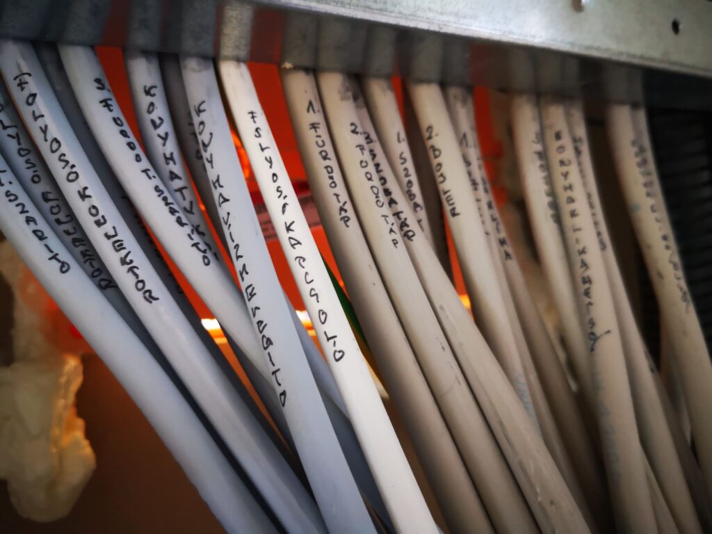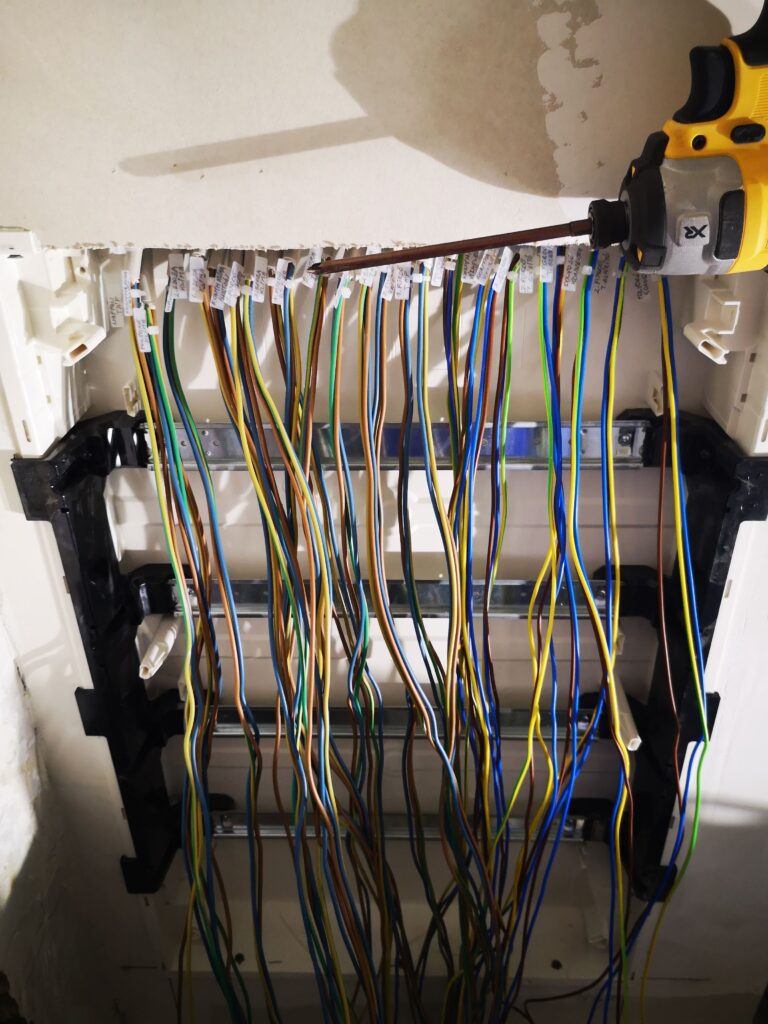 Miután eldőlt az elosztó típusa, be van építve a helyére – kábelezés előtt vagy után, az igazából teljesen mindegy olykor. Az elosztóban lévő automatika, energiaelosztásért felelős eszközöket szükséges áttekinteni. Ilyenkor már kedvezőbb helyzetben vagyunk, ha meglévő terv, tulajdonosi igények alapján, vagy meglévő ismert végpontok alapján dolgozunk. Mondanunk sem kell, hogy a minél vastagabb, annál jobb! Bizonyos áramkörök esetén ne akarjunk feleslegesen drága vezetékeket berakni (pl.: Lámpákhoz).