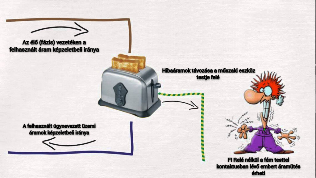 Röviden mire képes: Képzeljünk el egy olyan mérleget, ami az egyik oldalán azt méri, hogy mennyi áramot kapunk, a másik oldalán pedig azt méri, hogy mennyi áramot fogyasztunk. A mérleg akkor működik jól, hogyha a “Kapott és fogyasztott áramok” ugyanazt az értéket képviselik. Ha véletlenül egy olyan hibás fogyasztói eszköz kerülne beépítésre vagy csatlakoztatásra valamelyik áramkörbe, amelyen úgynevezett szivárgó áram folyik a mérlegen kívül, a külvilág felé, akkor a “mérlegünk” azonnal lekapcsolja a hálózatról a védett áramköröket!
